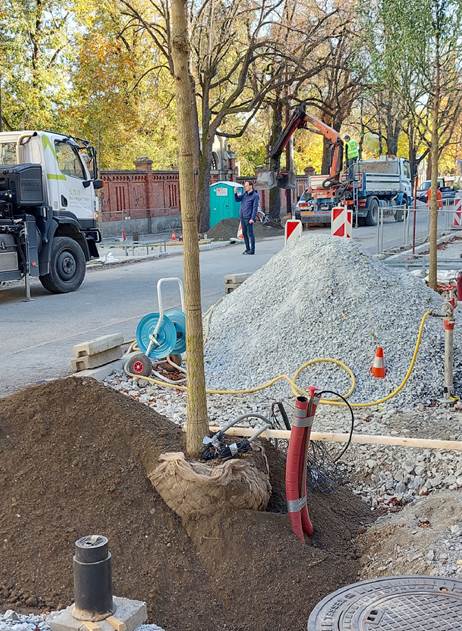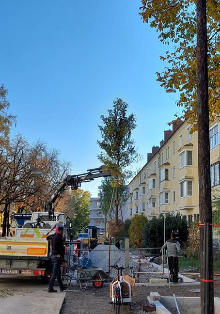 Baumsetzung neue Baumreihe in Substrat-Material am Leonhardgürtel